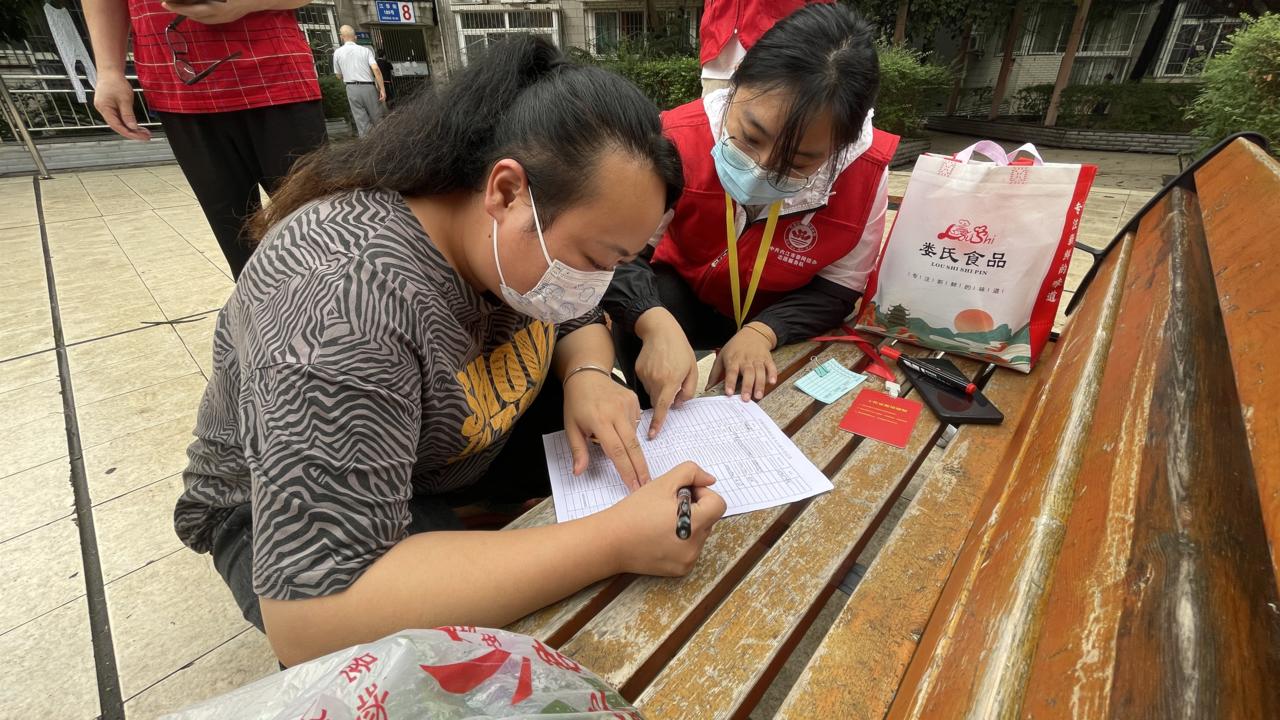 ▲内江市委网信办干部协助市中区牌楼街道牌楼社区发放小区出入卡
