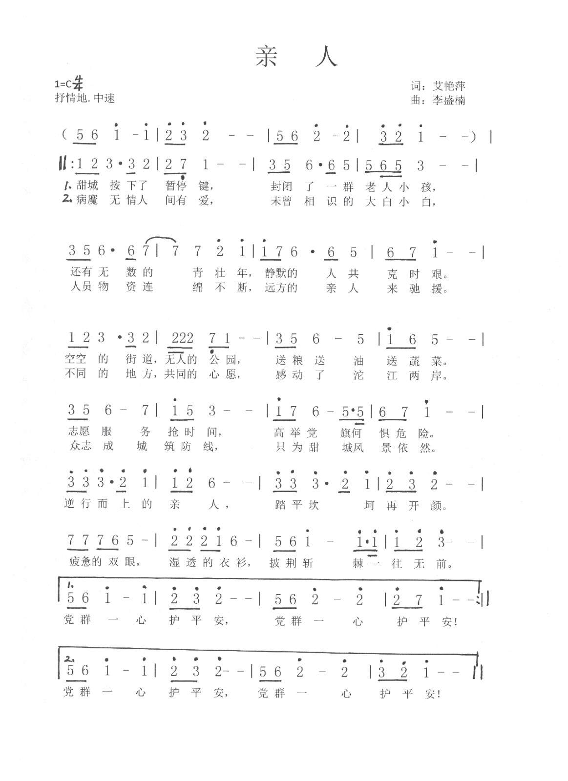 说干就干,艾艳萍联系学校音乐教师和美术教师一起进行创作,9月19日,一首感人至深的抗疫歌曲《亲人》“新鲜出炉”。
