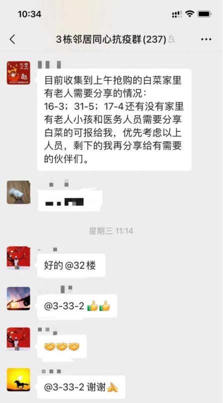 在业主群的聊天记录里,出现频率最高的几个词分别是:“感谢、加油和理解。”