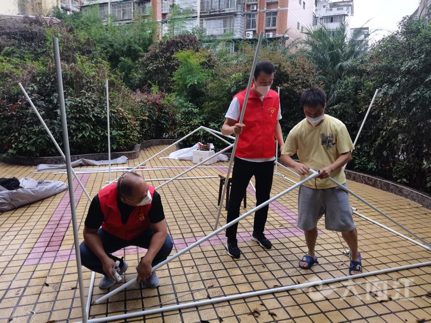 下午4点30分,因昨夜暴雨造成住宿帐篷坍塌,志愿服务队联系应急管理局送来住宿帐篷,在专业人员的精心指导和全体队员的合力协作下,完成了帐篷的搭建工作,为队员们提供了最细致的保障和服务。