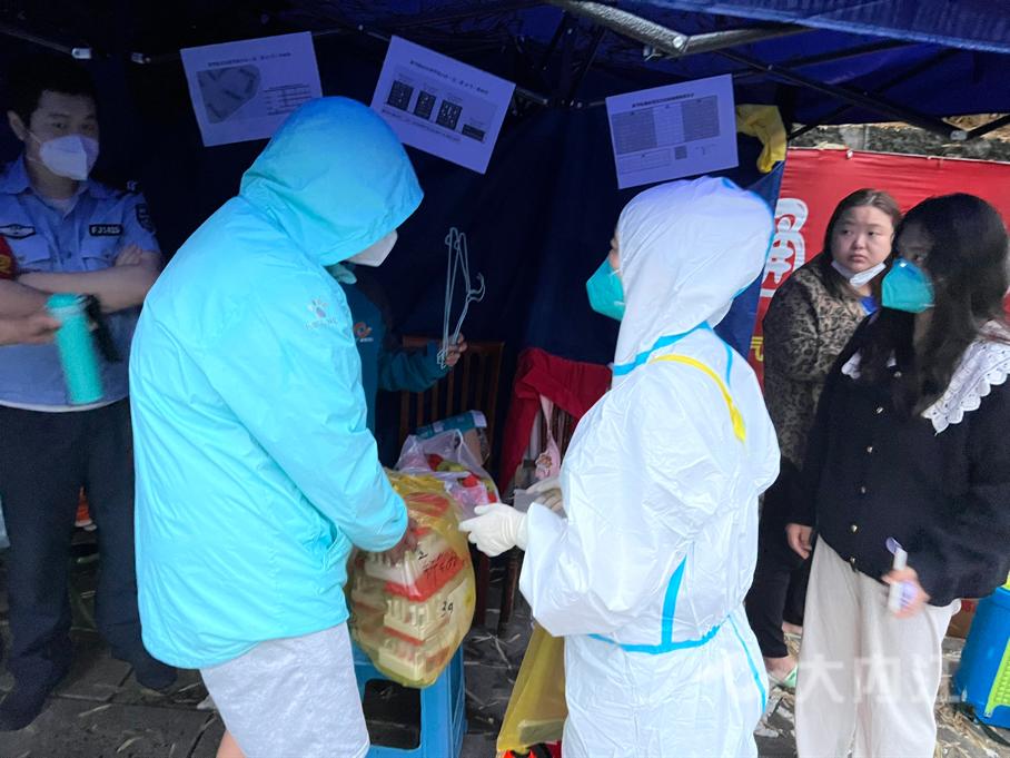 早上7点,志愿服务队召开简短工作会,传达昨晚市社区管控工作会议精神,并按照昨日市督导组和相关会议精神,查漏补缺,利用每天入户核酸检测时机,开展管控区封条,治安巡查,走访特殊关照的群众等日常工作。