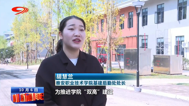雅安职业技术学院基建后勤处处长 胡慧兰:可容纳8000在校学生,校园内的配套设施更加完善,为推进学院“双高”建设和开办职教本科专业工作创造了坚实的硬件基础。