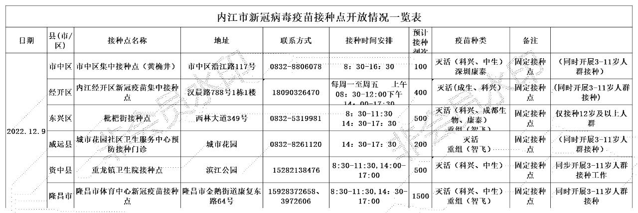转需!12月9日,内江这些地方可以接种新冠病毒疫苗