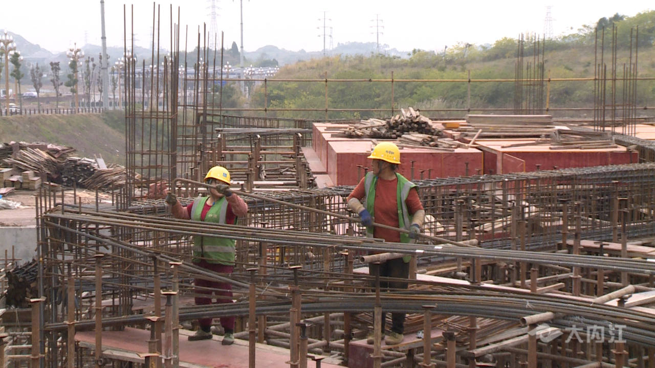 在新华·蓉欧+东盟国际物流中心项目建设现场,工人们正在加紧施工。该项目包含大宗交易市场、物流交易展示区、智能中转仓库、物流电商中心等设施,建成后可将东盟等地区的水产、咖啡、茶叶等进口商品通过内江中转、销售和配送,同时将川南区域的特色产品销往港澳、东盟和欧洲。
