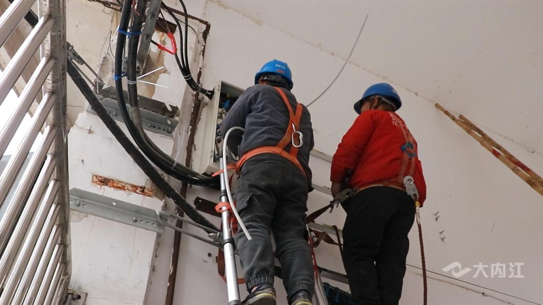 在全力推进农村人居环境整治的同时,内江市还持续深入推进老旧小区改造工作,这两天,市中区玉溪街道新华路西二巷老旧小区内,正在进行“蜘蛛网”(弱强电线)改造。