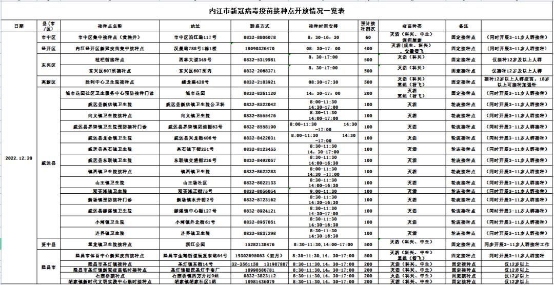 速看!12月20日,内江这些地方可以接种新冠病毒疫苗