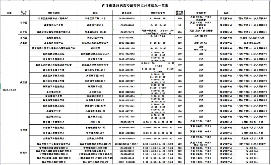 转需!12月22日,内江这些地方可以接种新冠病毒疫苗