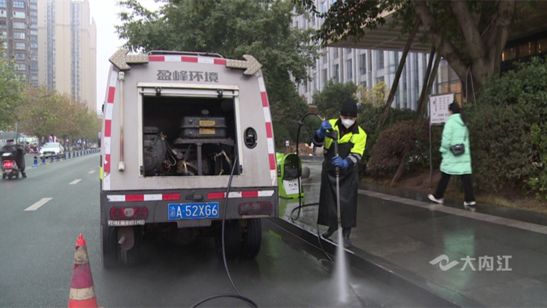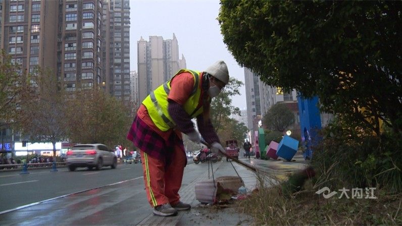 与此同时,在内江城区的大街小巷,环卫工人们也都坚守岗位,用辛勤劳动迎接着新一年的到来。