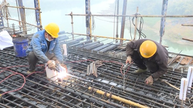 与此同时,在内江水心坝大桥及连接线工程项目施工现场,工人们正忙着进行桥梁上部结构的钢筋绑扎和焊接等工序,为确保今年上半年大桥顺利合龙打下基础。