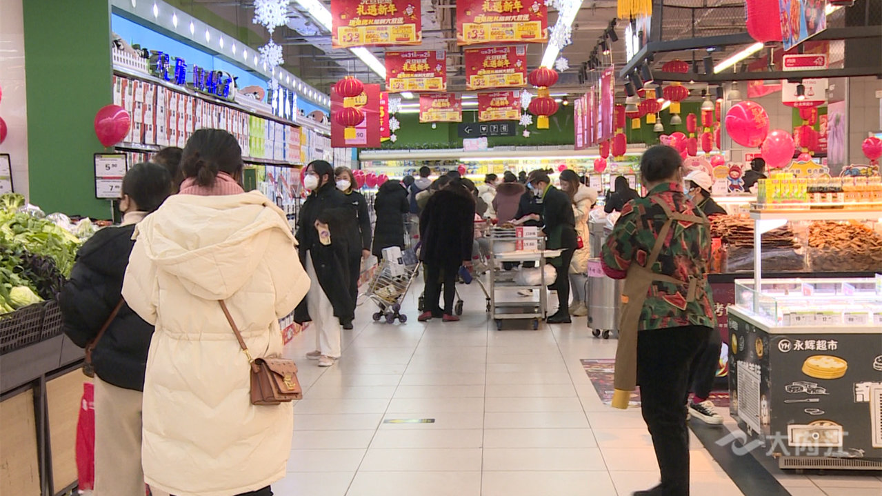 在一处大型商超内,一场以“元旦钜惠·礼遇新年”为主题的促销活动正在举行,巨大的优惠力度吸引了不少市民前往购物。随着疫情防控措施的优化调整,该超市的客流量逐步回升,目前平均每天可接待顾客5000余人次。