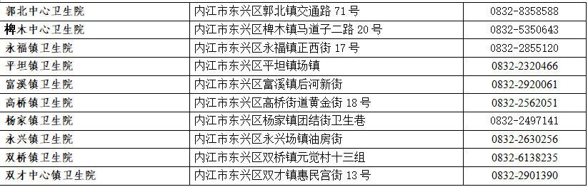 时间:2023-01-03 10:23:26 来源:内江市东兴区卫生健康局近日,东兴区为方便居民获取抗原检测指导、健康检测以及健康咨询、用药指导等医疗服务,公布一批镇卫生院和社区卫生服务中心咨询电话,详情如下: