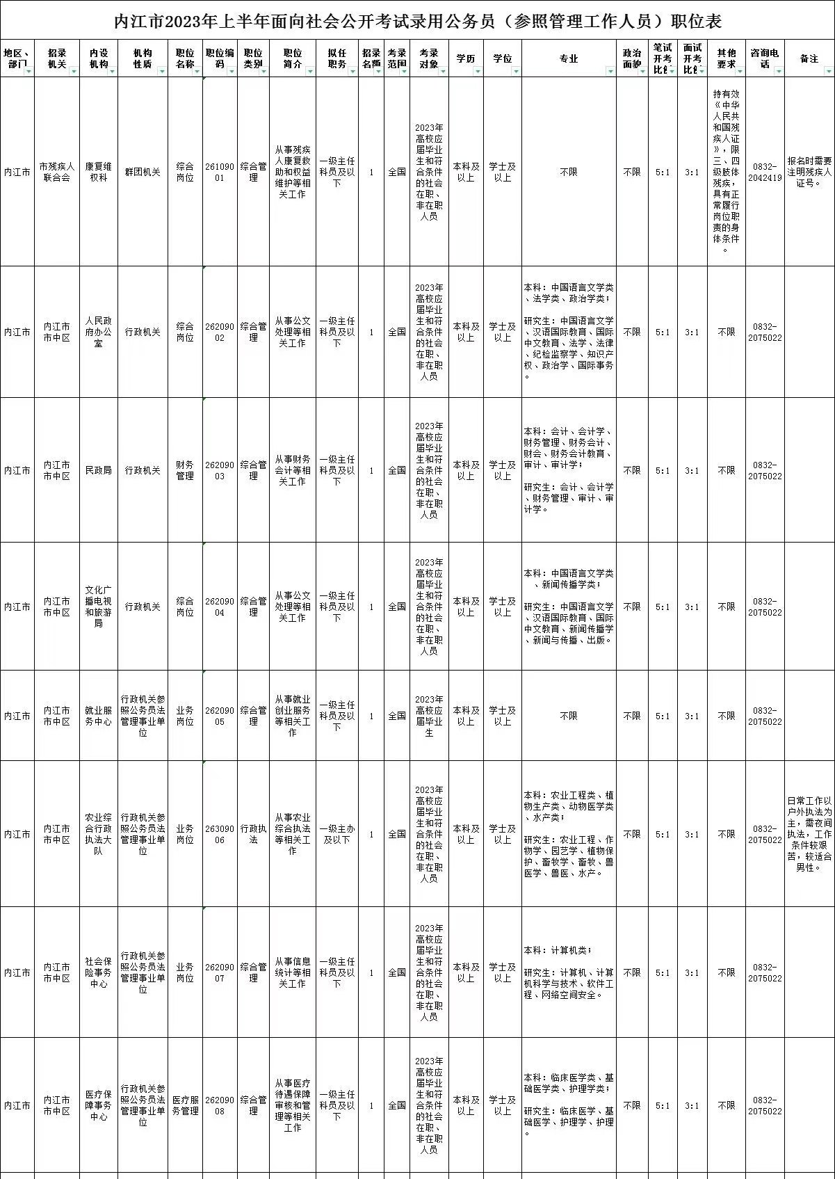 时间:2023-01-03 14:58:17 来源:内江人事考试网1月3日,江粉儿从内江人事考试网获悉,2023年上半年内江市决定面向社会公开考试录用公务员(参照管理工作人员)230名,详情如下: