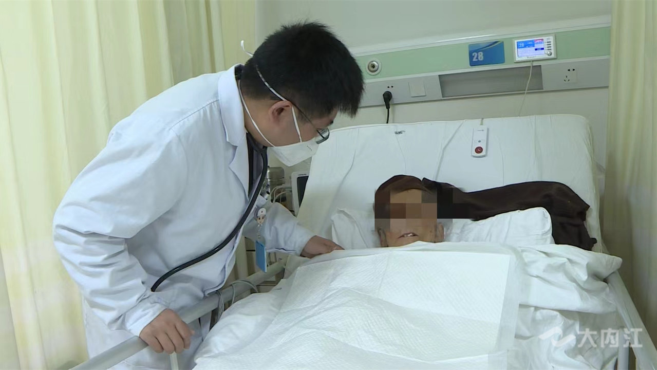 1月3日,记者在内江市第一人民医院看到,医生正在为百岁老人检查身体。据家属介绍,去年12月19日老人感染新冠病毒后,连续三日发烧、咳嗽严重。家人见老人每况愈下,便赶紧将其送到医院治疗。考虑到老人年岁已高,院方非常重视,在医疗资源非常紧张的情况下,依然很快就协调好床位,让老人顺利入院治疗。目前,经过救治心衰、抗病毒等治疗后,老人的呼吸困难等问题得到明显改善,已能正常进食,精神状态也好了很多。