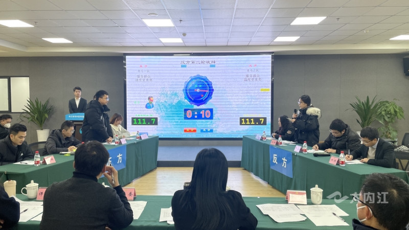 时间:2023-01-05 14:39:26 来源:内江广播电视台1月5日,市中区年轻干部辩论赛半决赛在内江市新经济产业园举行。由全区各部门的年轻干部组成的4支参赛队伍,分别围绕“服务群众,速度更重要还是温度更重要”和“有为才能有位还是有位才能有为”两个辩题展开激烈辩论。