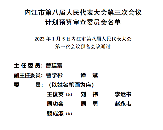 内江市第八届人民代表大会第三次会议计划预算审查委员会名单