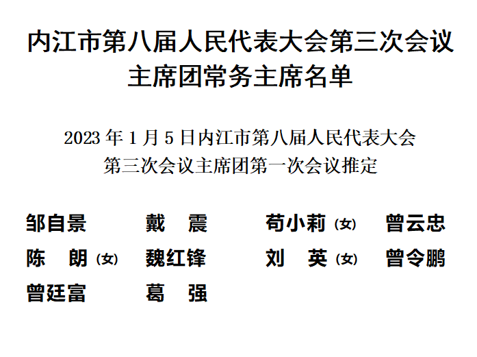 内江市第八届人民代表大会第三次会议主席团常务主席名单