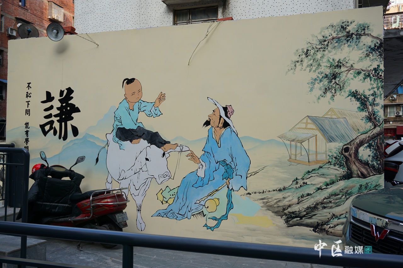 近日,记者在民族路北二巷看到了新打造的“忠孝仁义礼智信”主题文化墙,谁又能想到,这里以前是破旧的居民小区。