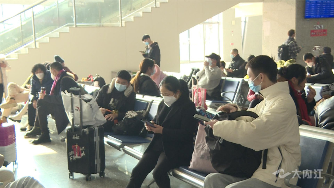 与此同时,在内江综合客运中心,工作人员逐一检查旅客行李,提醒旅客携带好随身物品等待乘车。针对旅客回乡过年、探亲访友、观光旅游等出行需求,内江综合客运中心提前做出预案,对重点地区、重点线路进行统筹调配,增加客运班次,确保旅客随到随走。