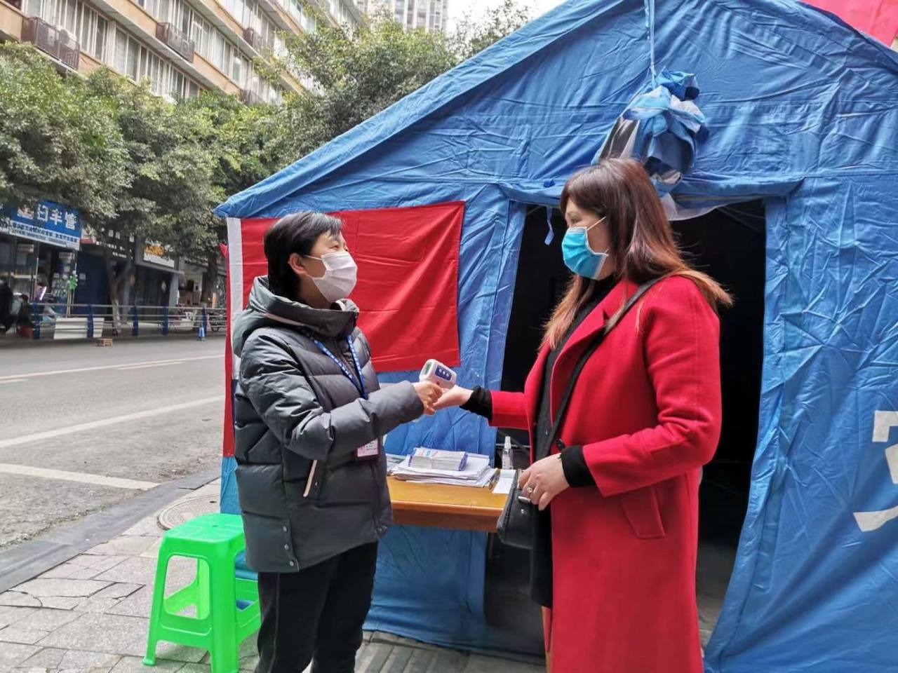 ▲开展疫情防控工作 谭晓燕(左)