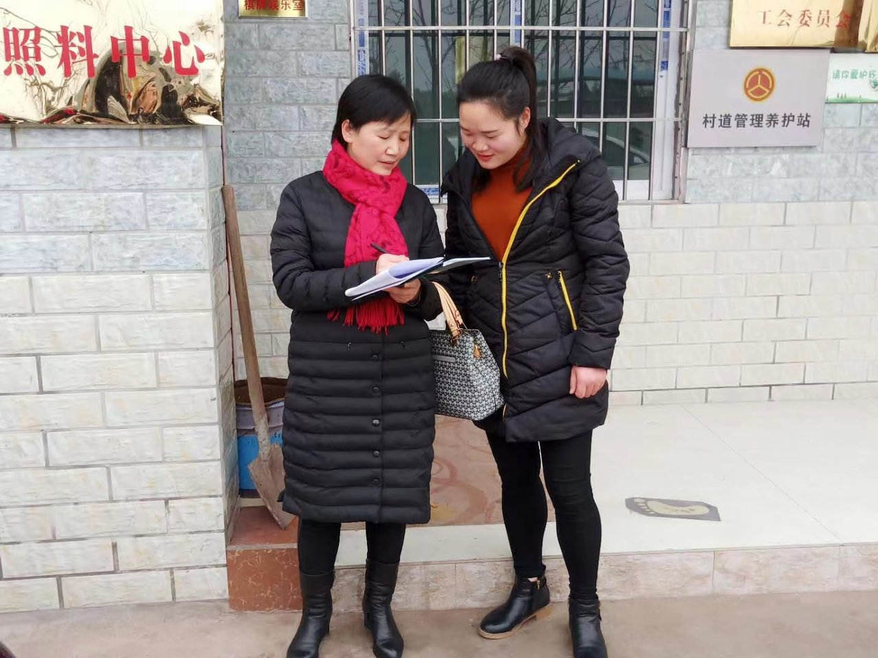 ▲走访群众 谭晓燕(左)