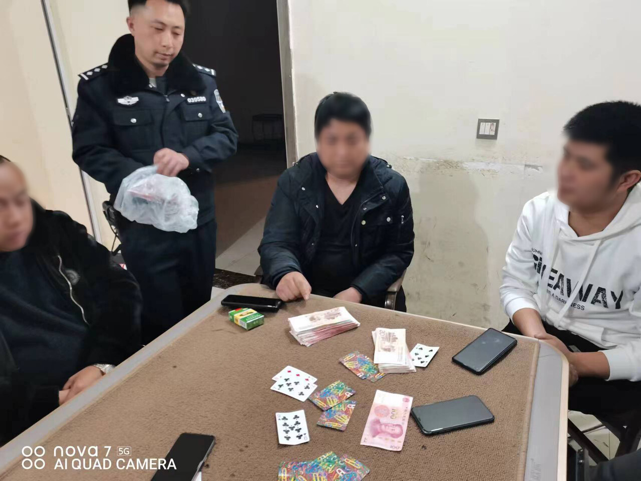 2023年2月8日,资中县公安局双河派出所民辅警对辖区茶馆进行日常检查时,发现茶馆其中一包间异常,民警立即进入包间突击检查,现场抓获7名涉赌人员,查扣赌资两万余元,同时传唤该茶馆老板至公安机关接受调查。