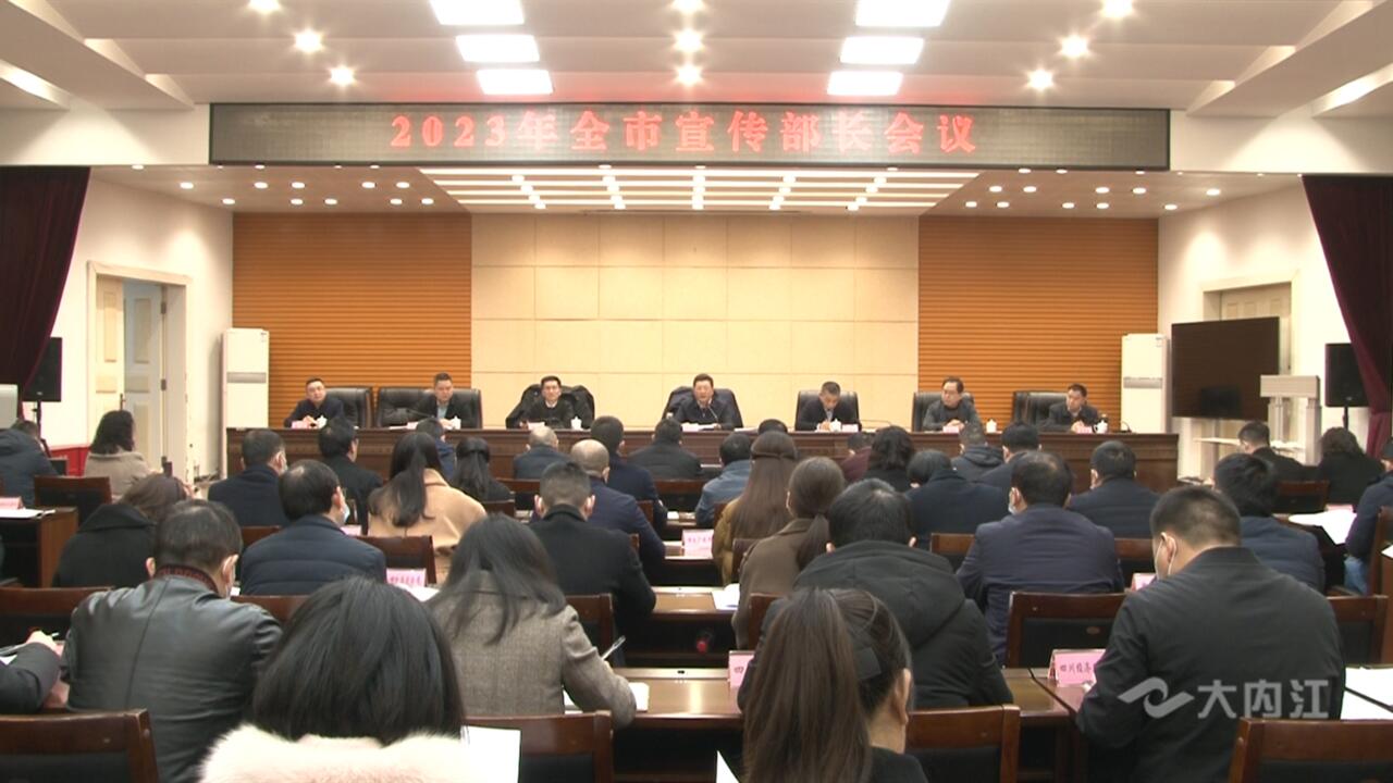 会议对今年任务作出明确部署:健全“一个工作体系”,精心组织理论学习,广泛开展宣传宣讲,深入推进研究阐释,坚持不懈用习近平新时代中国特色社会主义思想凝心铸魂。紧扣“一条工作主线”,持续深入学习宣传贯彻党的二十大精神,利用宣传平台、宣讲队伍、学习品牌、新闻媒体等载体,在学深悟透、宣传宣讲和落地落实上持续用力,巩固壮大奋进新时代的主流思想舆论。推进“一场集中攻坚”,全力推进全国文明城市创建,坚持问题导向、目标导向、结果导向,把创建工作落实到各环节、各领域,同时立足“美乡优城”,科学利用各类资源,深化拓展新时代文明实践中心(所、站、点)建设;擦亮“德耀甜城”工作品牌,营造见贤思齐、德行天下的社会风尚。抓实“一个中心任务”,加快建设新时代文化强市,传承弘扬优秀传统文化,繁荣发展文艺事业,在“研学游”“水文章”“夜内江”等方面下足功夫,推进文旅深度融合发展,满足人民群众日益增长的精神文化需要。筑牢“一条安全防线”,发扬斗争精神,健全机制、管好阵地、防范风险,坚决维护意识形态安全。开展“一个专项行动”,深化干部队伍“作风能力专项提升行动”,坚持和加强党的领导,大力弘扬“见红旗就扛、见先进就争”的精神,将经济工作理念融入宣传思想文化工作,全力争创一流业绩。