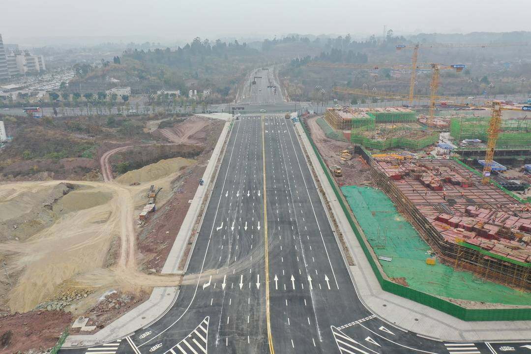 时间:2023-02-18 09:11:12 来源:封面新闻2月17日,记者在内江新区邓家坝片区东片区看到,顺江路、锦绣路东段、文澜路等多条道路正在加快建设,与甜城大道交汇的康宁路已经完成了全路段的水稳层、人行道以及760米沥青道路施工。航拍镜头下,道路宽阔平坦、标线清晰。