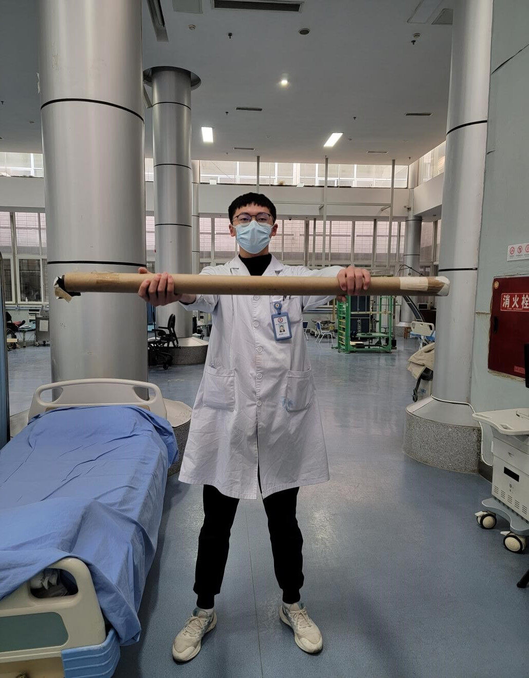 四、双手握持长约1米的木棒进行各个方向的运动,每日运动50次。