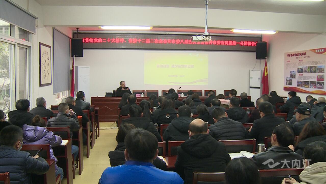时间:2023-02-22 14:50:45 来源:内江广播电视台2月21日,内江市委宣讲团走进市中区教育与体育局宣讲党的二十大精神、省委十二届二次全会和市委八届五次全会精神。