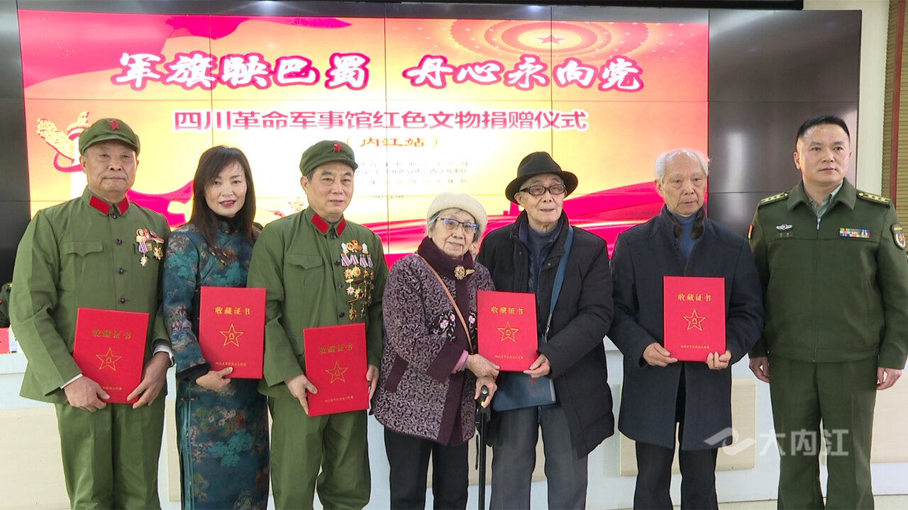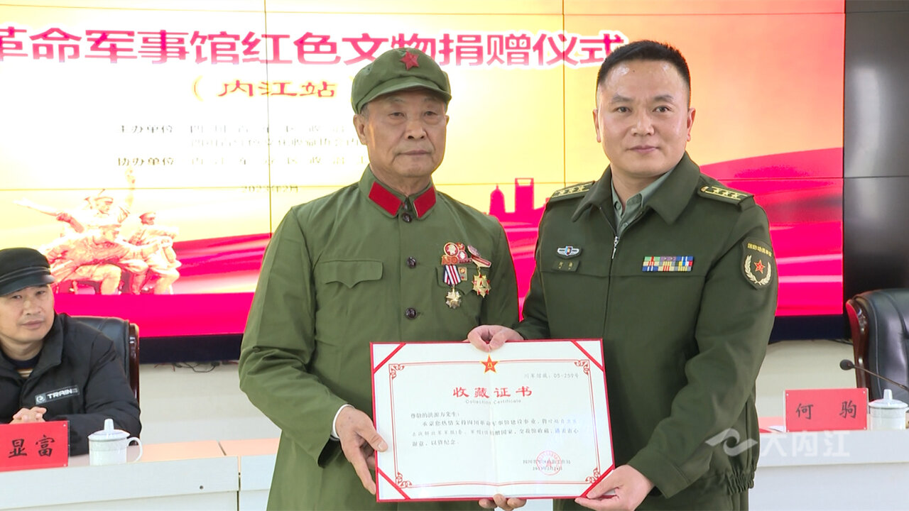 捐赠仪式上,省军区政治工作局、内江军分区领导现场为四川省红色文化收藏协会内江办事处赠送了锦旗,为捐赠文物个人颁发了证书。