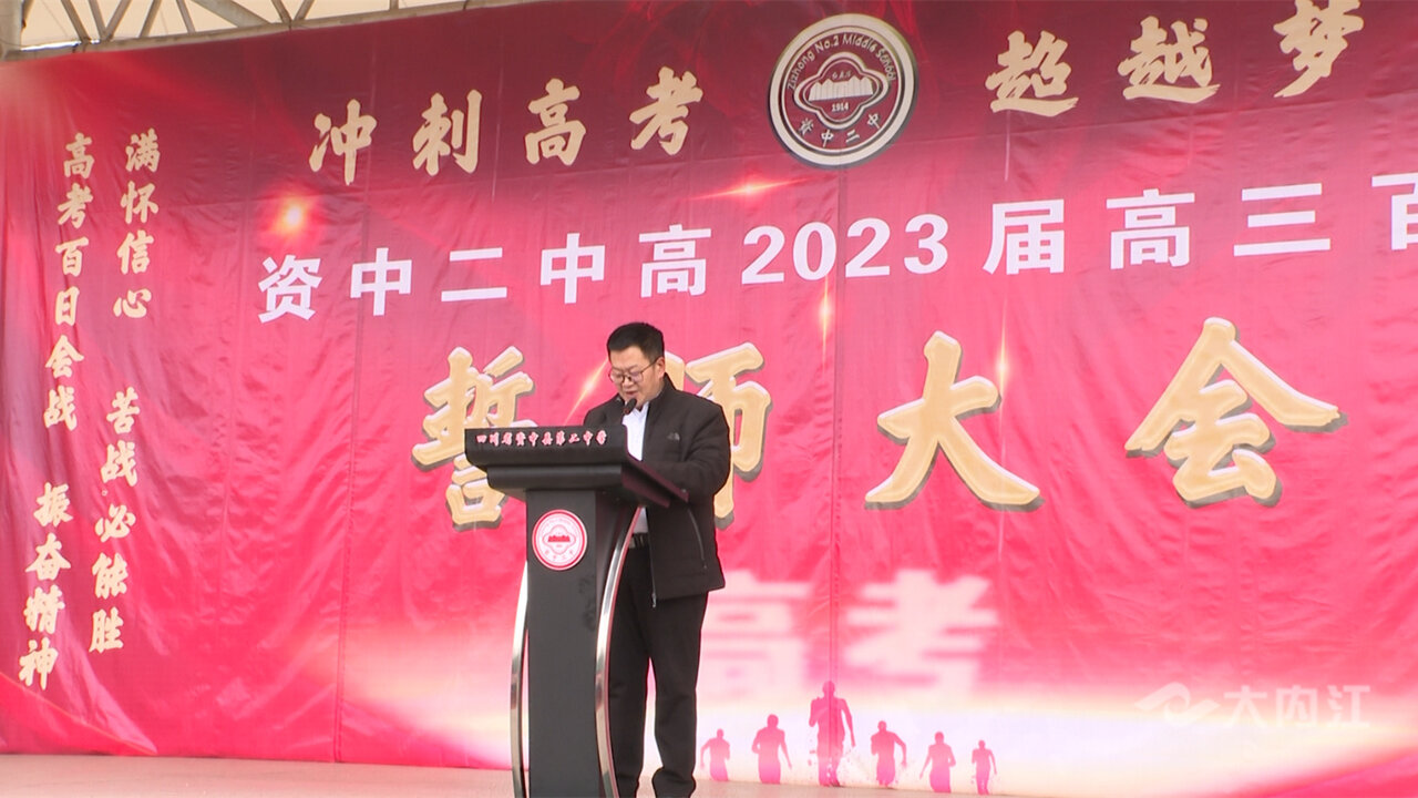 时间:2023-02-25 14:57:26 来源:内江广播电视台春光无限好,奋进正当时。2月25日,资中二中举行高2023级高三百日誓师大会。全体高三学子带着老师、家长的殷殷祝福,满怀对未来的美好憧憬,正式跨入了高考百日的冲刺阶段。