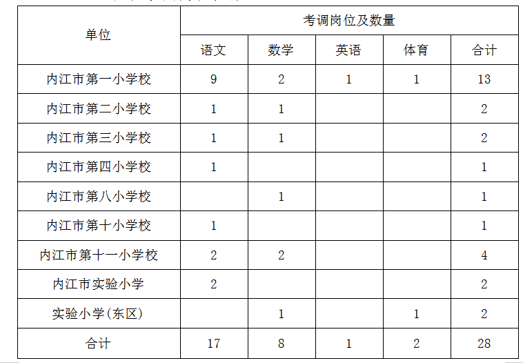 (一)小学考调岗位及数量