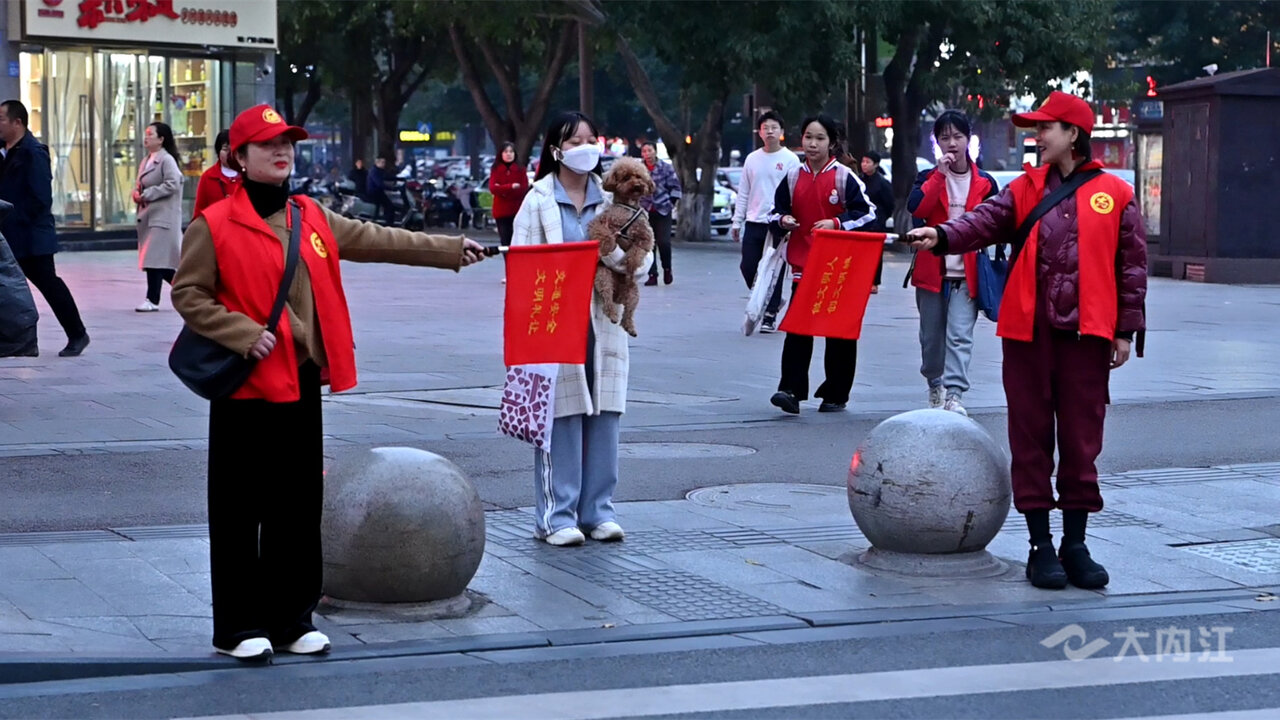 甜美内江城·最美内江人丨引领文明出行!内江“红马甲”在行动
