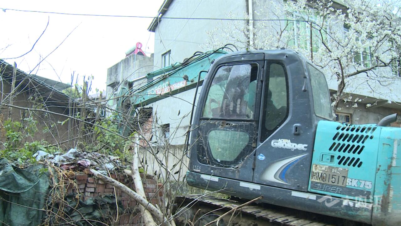 近日,记者在朝阳镇道子田村5社看到,挖掘机将一栋年代久远的土坯房推倒,村民和村两委人员积极帮忙清理道路两侧的阻拦物,现场一片繁忙。在一旁的农家小院内,屋主胡利平将自家院内的杂物一一收捡理顺。