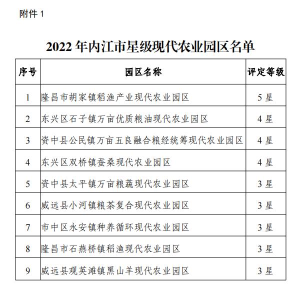 1.2022年内江市星级现代农业园区名单