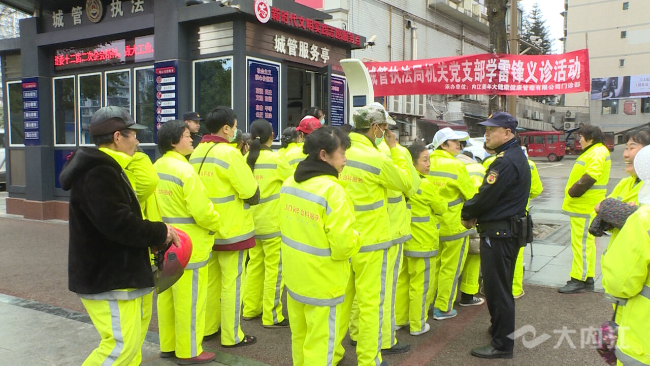 3月1日一大早,在位于东兴区大千路北沿线的城管岗亭新时代文明实践志愿服务点,市城管执法局联合内江市某医疗机构的工作人员就忙着为环卫工人和过往市民群众开展身高、体重、血压测量等义诊项目,并提供健康咨询。