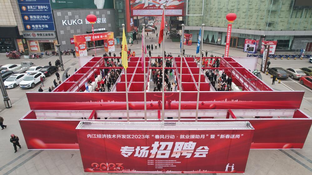 与此同时,内江经开区充分利用覆盖全区500余户参保企业的QQ群收集辖区企业用工需求,并持续转发至覆盖全区村社的26个农民工微信群。今年以来,已开展线上招聘会20场,其中网络专场招聘会2场,通过QQ、微信群推送企业用工信息2000余条,网络专场招聘会85户企业提供8352个岗位;利用春节返乡时机,面向广大外出务工人员和城镇下岗失业人员,开展线下招聘会28场,目前已有序开展22场,提供岗位2928个。