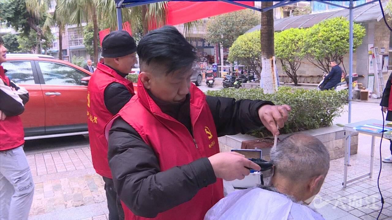 与此同时,东兴区西林街道汉安社区组织开展“学雷锋 树新风”暨文明城市创建宣传活动,为社区居民免费提供理发、磨刀等服务,并通过现场讲解,发放宣传资料等形式,讲解文明城市创建和禁毒防骗等相关知识。