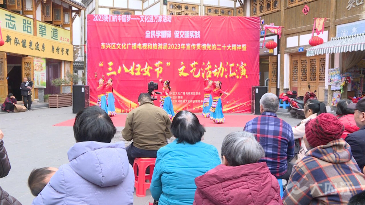 在东兴区,“全民学雷锋 促文明实践”三八国际妇女节文艺汇演活动,展现出新时代文明实践成果,营造了“和谐社区一家亲”的良好氛围,深化了新时代精神文明建设。