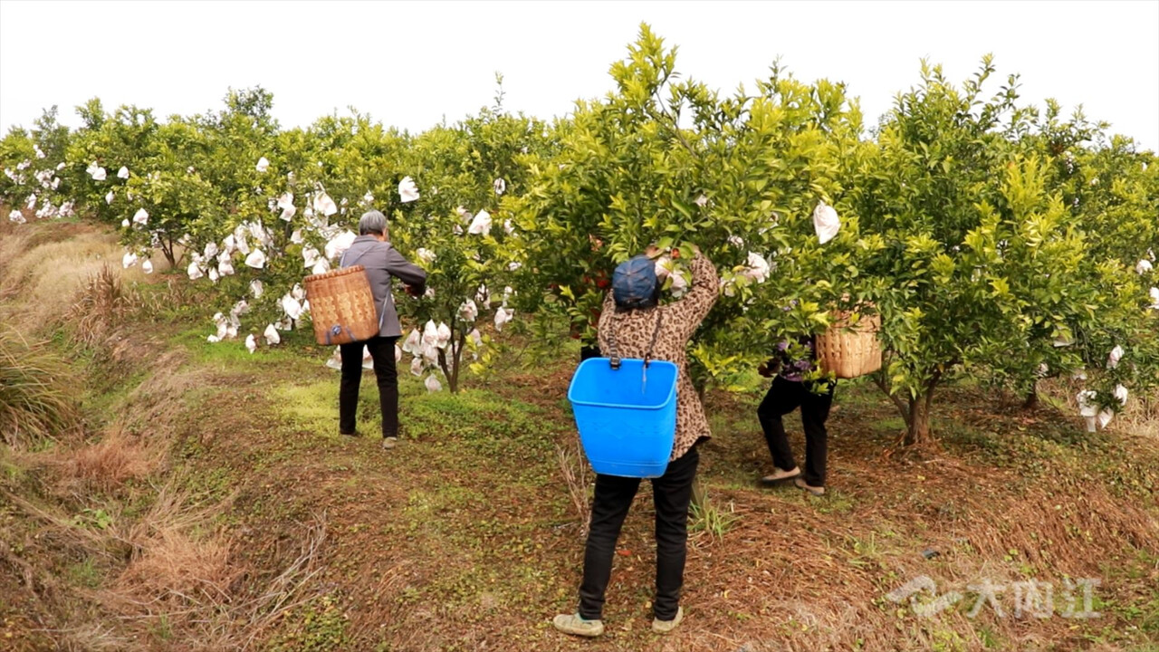 果农们有的在大片柑橘林间穿行,娴熟地将柑橘剪下,集中装入筐中,有的则将一筐筐耙耙柑运往路边的货车旁,还有的进行着果品分拣、打包与装车,以满足各地水果市场供应。