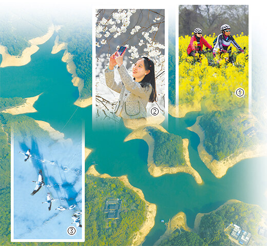 图②:甘肃省陇南市武都区城关镇石家庄村千亩樱桃花迎春绽放,吸引游人踏青赏花,享受春光。
