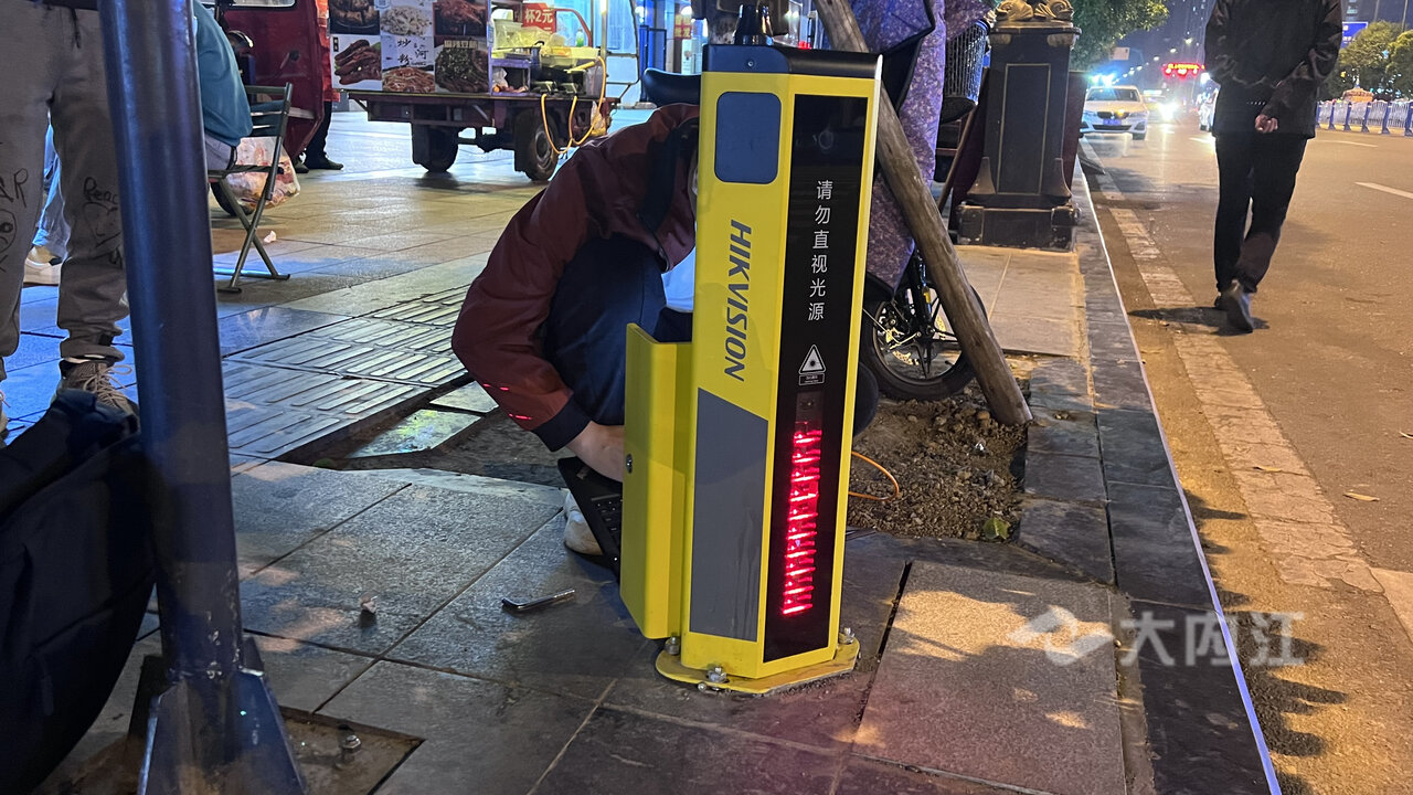 ▲调试“过街神器”警示装置