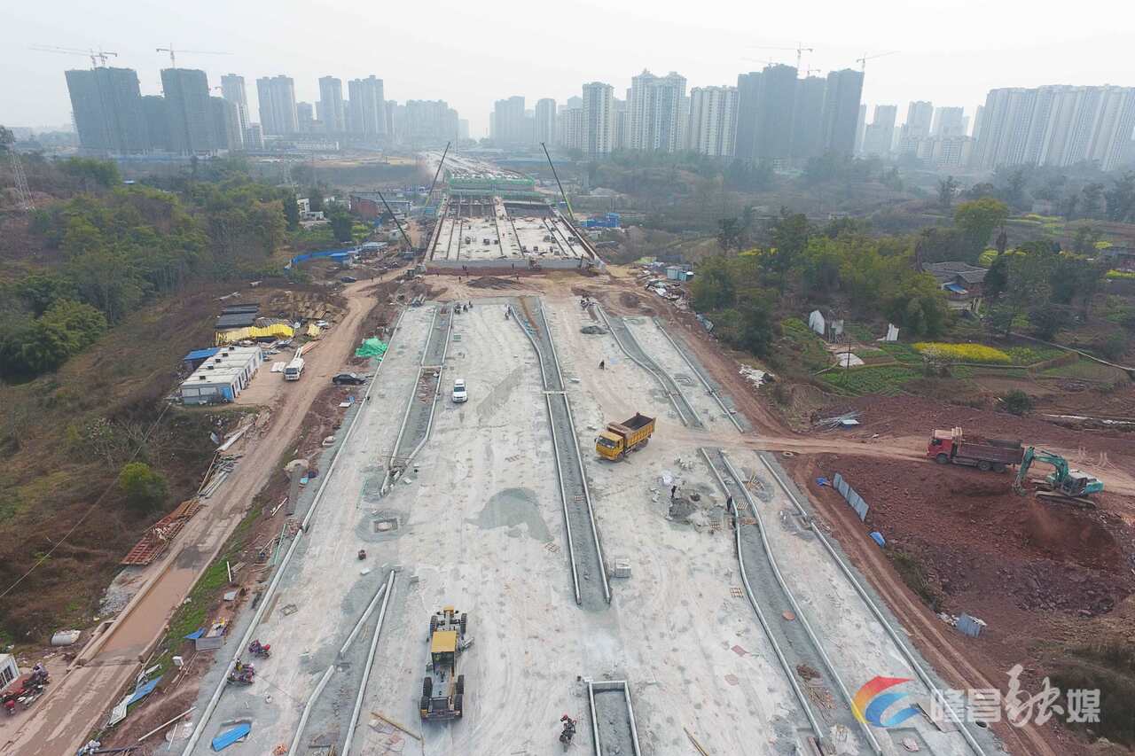 自今年正月初三复工以来,项目现场有了翻天复地的变化,呈现出一番忙碌有序,处处热火朝天的施工景象。 截至目前,项目已完成1号桥第一联、第二联、第五联和第四联右幅箱梁施工,第四联箱梁左幅箱梁已经完成第一次浇筑,道路工程完成路基及管网施工;涉铁工程完成P6、P7、P8号桥墩、预制箱梁钢筋绑扎30片、接触网基础施工等。项目总进度已完成85%,预计4月30日达到通车条件。 下一步,隆昌市将继续以项目为抓手,整体布局、有序实施,做到开工一批、续建一批、竣工一批,加快完善城市道路路网结构,提高道路通行能力,改善市民出行条件,提升城市整体形象,建设路更畅、景更美的精致靓丽隆昌。
