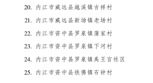 时间:2023-04-19 11:05:28 来源:川观新闻江粉儿从“四川省政府网”获悉,根据《四川省传统村落保护条例》,经各地申报、专家审查并向社会公示,省政府决定将1165个村落列入四川传统村落名录,其中内江25地上榜,现予公布,详情如下: