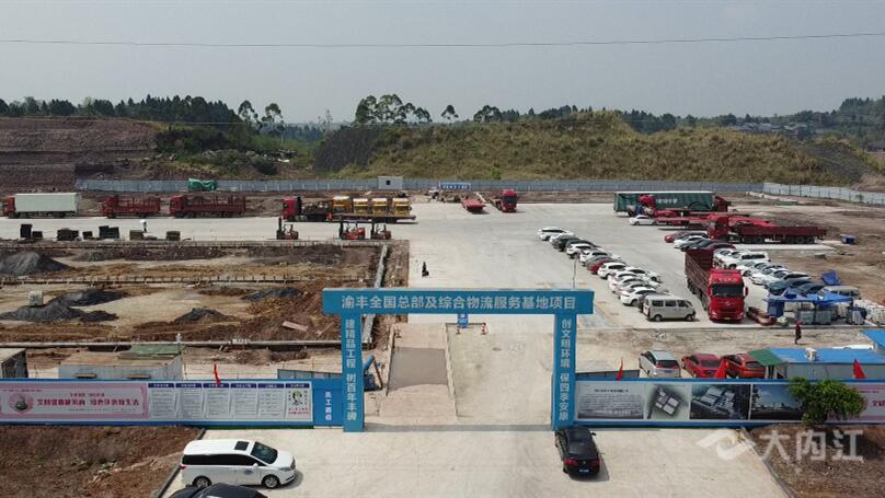 与此同时,在工业园区另一侧的渝丰全国总部及综合物流服务基地项目现场,工人们正在进行厂房大楼基础混凝土浇筑。据了解,该项目占地面积50余亩,总投资1.66亿元,建设总部办公大楼、综合性物流仓储基地及内江市集装箱物流服务中心,预计9月底建成,项目全部建成达产后,预计年产值可达1.8亿元。