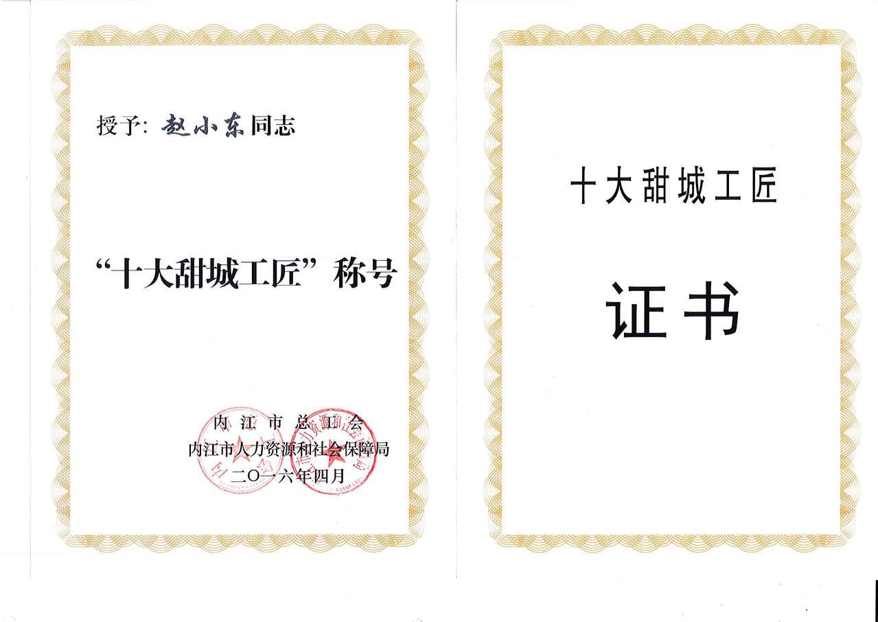 与此同时,赵小东还积极参与师带徒培训、员工技能等级培训、新型学徒制培训等各类讲课60余期,培训职工3000余人次,先后培养出评定技师4名、领证技师4名、内江市首席技师和内江市“甜城十大工匠”3名,为公司转型升级发展提供了有力人才支撑。