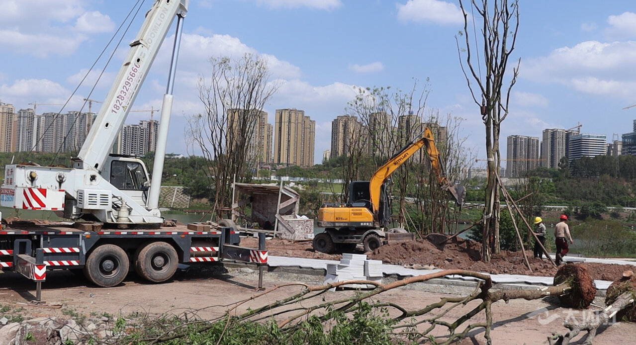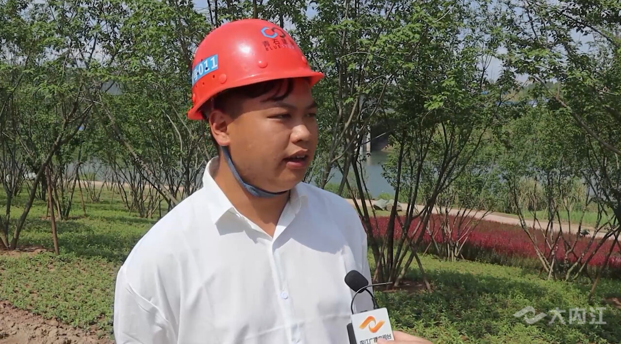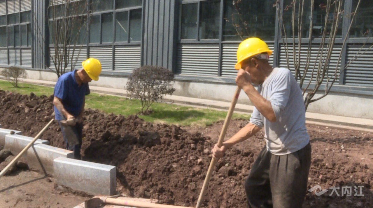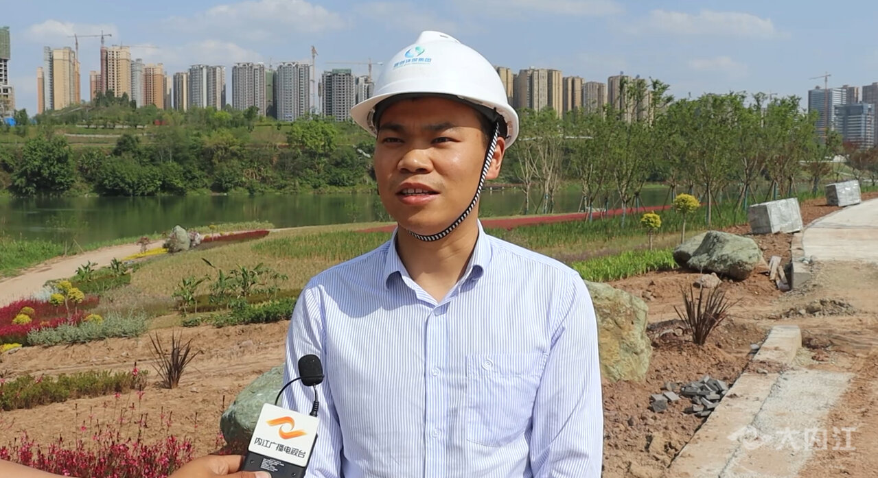 同样,在邓家坝湿地公园项目建设现场,工人们正加紧进行道路铺装和绿化种植。来自成都的杨郑在现场负责施工管理,他告诉记者,这已经是他来到内江项目的第5个年头了,几乎每个假期他和工友们都是在加班抢工期中度过。他还介绍道,最近天气比较热,苗木的存活率比较低,要尽量在夏天来临之前完成项目的全部绿化种植, 虽然五一节回不去有点遗憾,但是为了内江有更好的人居环境,这些都是值得的。