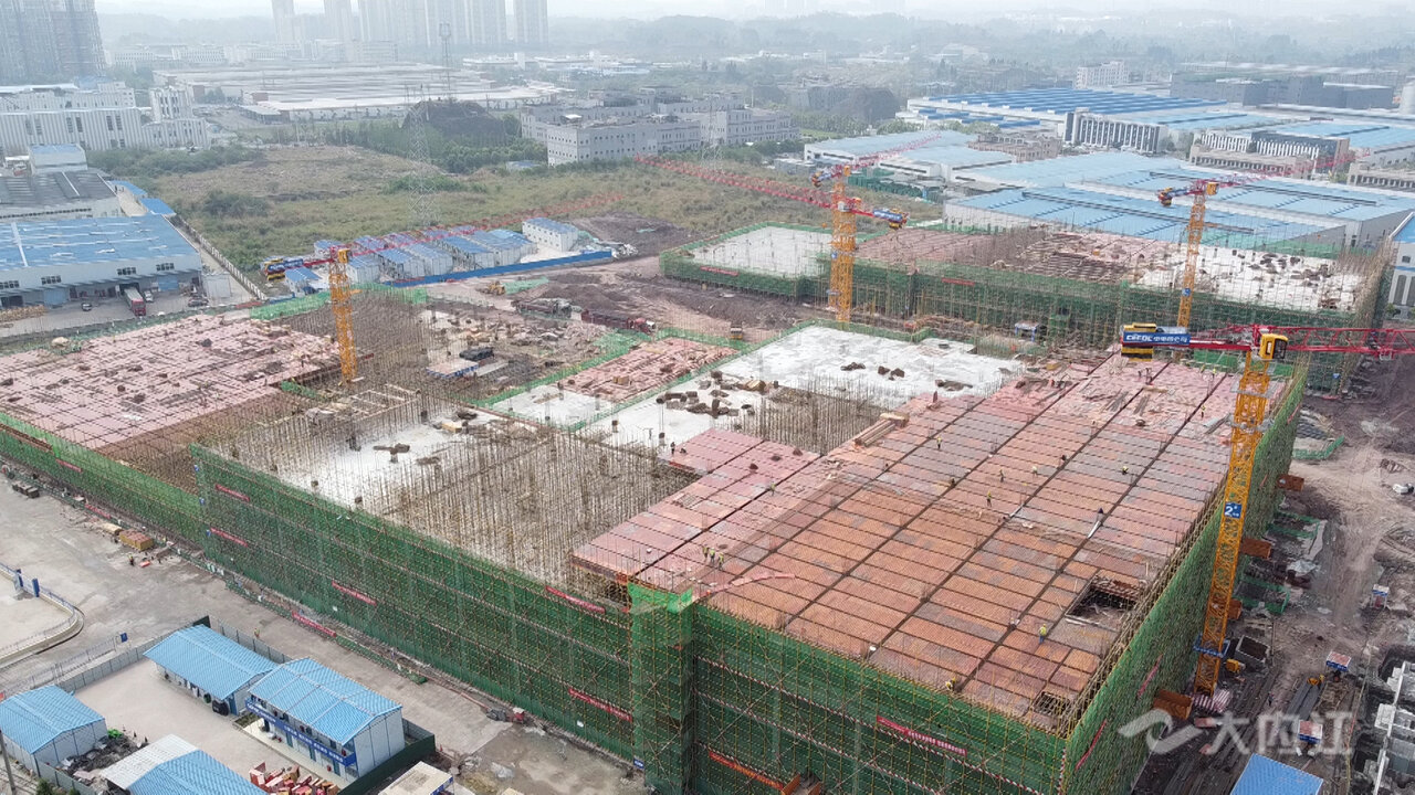 城市基础设施项目加速推进的同时,产业项目建设也如火如荼。在位于内江经开区的中显智能新型触控显示模组生产基地项目建设现场,高架塔吊在空中挥臂、机械轰鸣声不绝于耳,500余名工人分布在各个施工作业区,加紧进行制模、钢筋制作与绑扎等工作。