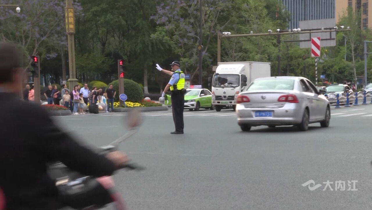 据了解,节日期间,内江市广大交警放弃休假,在岗在位,对重点景区、重点路段和易发生交通拥堵的路口均部署专门警力进行疏导和调流,指挥过往车辆有序通行。