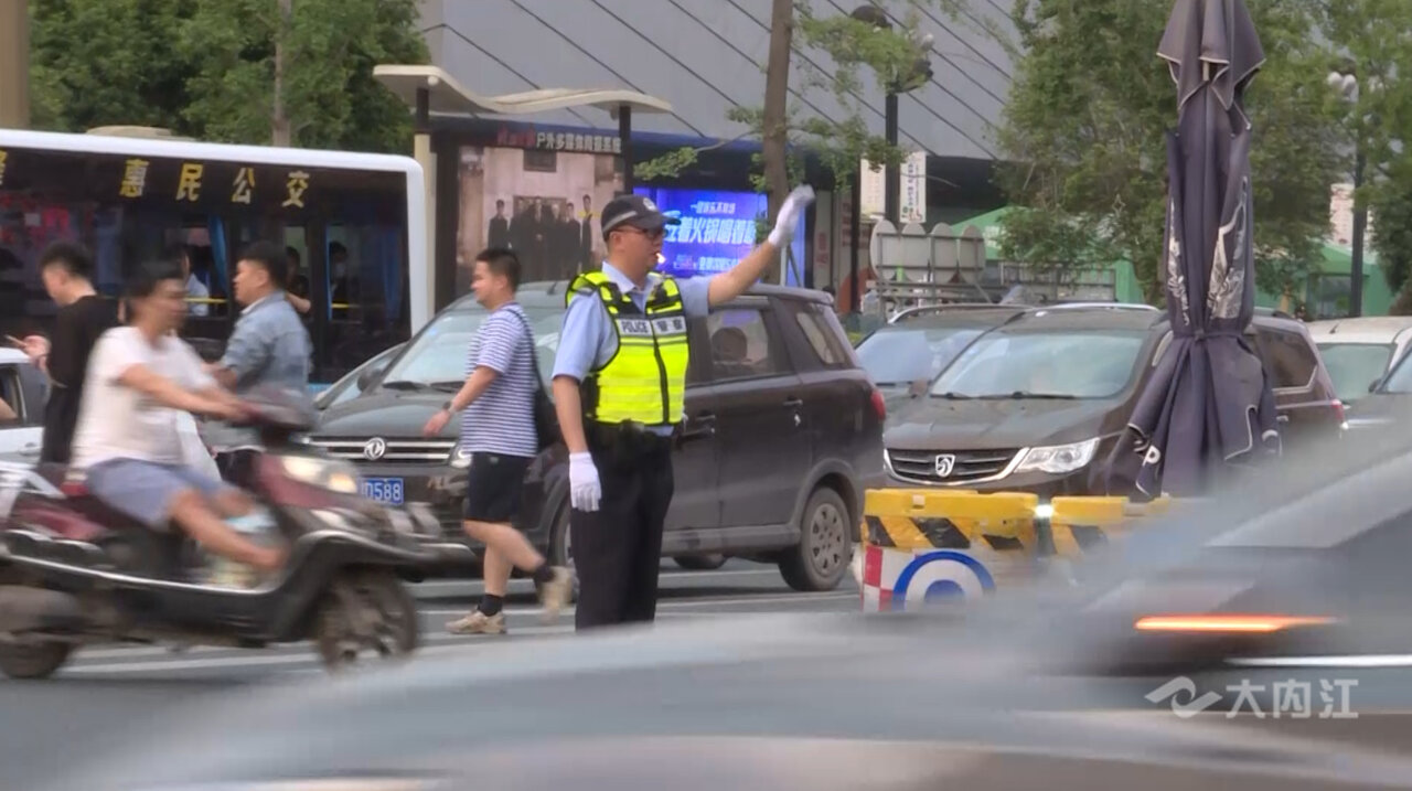 节日期间,道路交通压力剧增,为营造平安、祥和的节日气氛,确保交通安全畅通有序,内江交警坚守路面一线,疏堵保畅、服务群众。